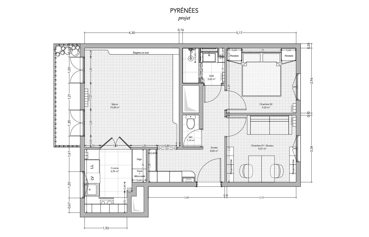 Le projet porte sur la rénovation et le réaménagement d’un appartement parisien dans le 20ᵉ arrondissement. Nous avons repensé cet appartement pour en améliorer l’utilisation et mieux organiser les espaces de jour. Le séjour et la cuisine, auparavant séparés, sont devenus une pièce de vie ouverte et accueillante. L’entrée est conçue comme un espace d’accueil intime. Cette réorganisation facilite la compréhension du logement et augmente le confort.